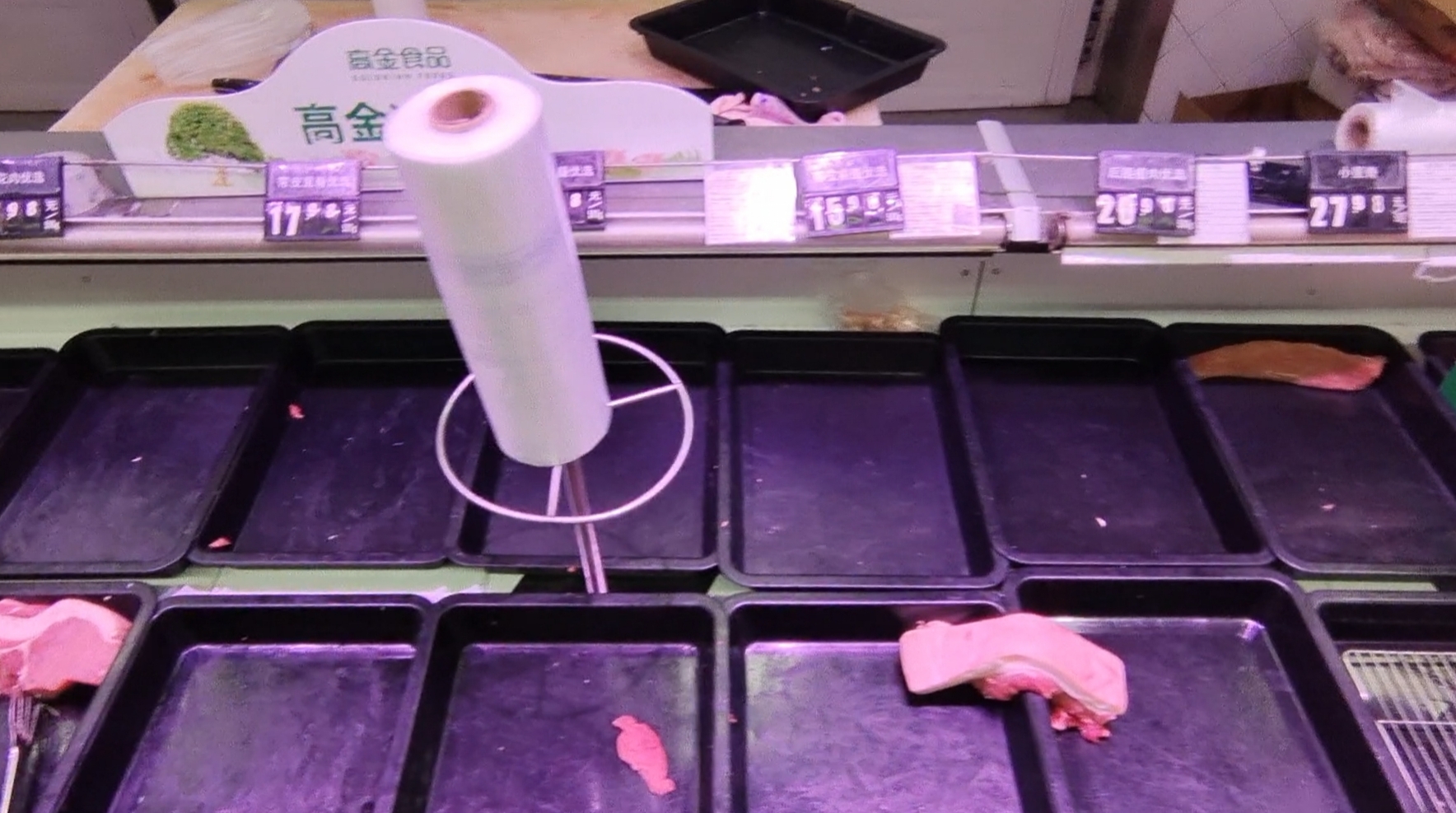 “其实平时生意就不错,但是今天卖得更快一些,其实没必要抢,我们下午还会补货。”站在柜前的营业员说,“肉价目前并不贵,所以卖得快。”