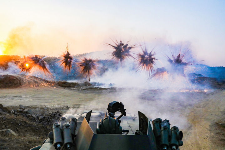 陆军第72集团军某旅组织某型轮式装甲输送车进行车载烟幕实弹射击训练(2021年1月4日摄)。新华社发(张毛摄)