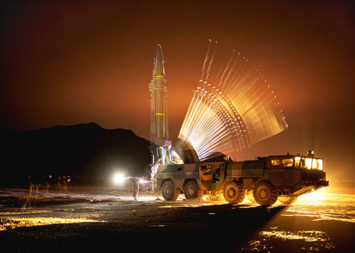 演训中,火箭军某旅在发射场进行夜间火力突击演练(资料照片,多重曝光)。新华社发(刘明松摄)