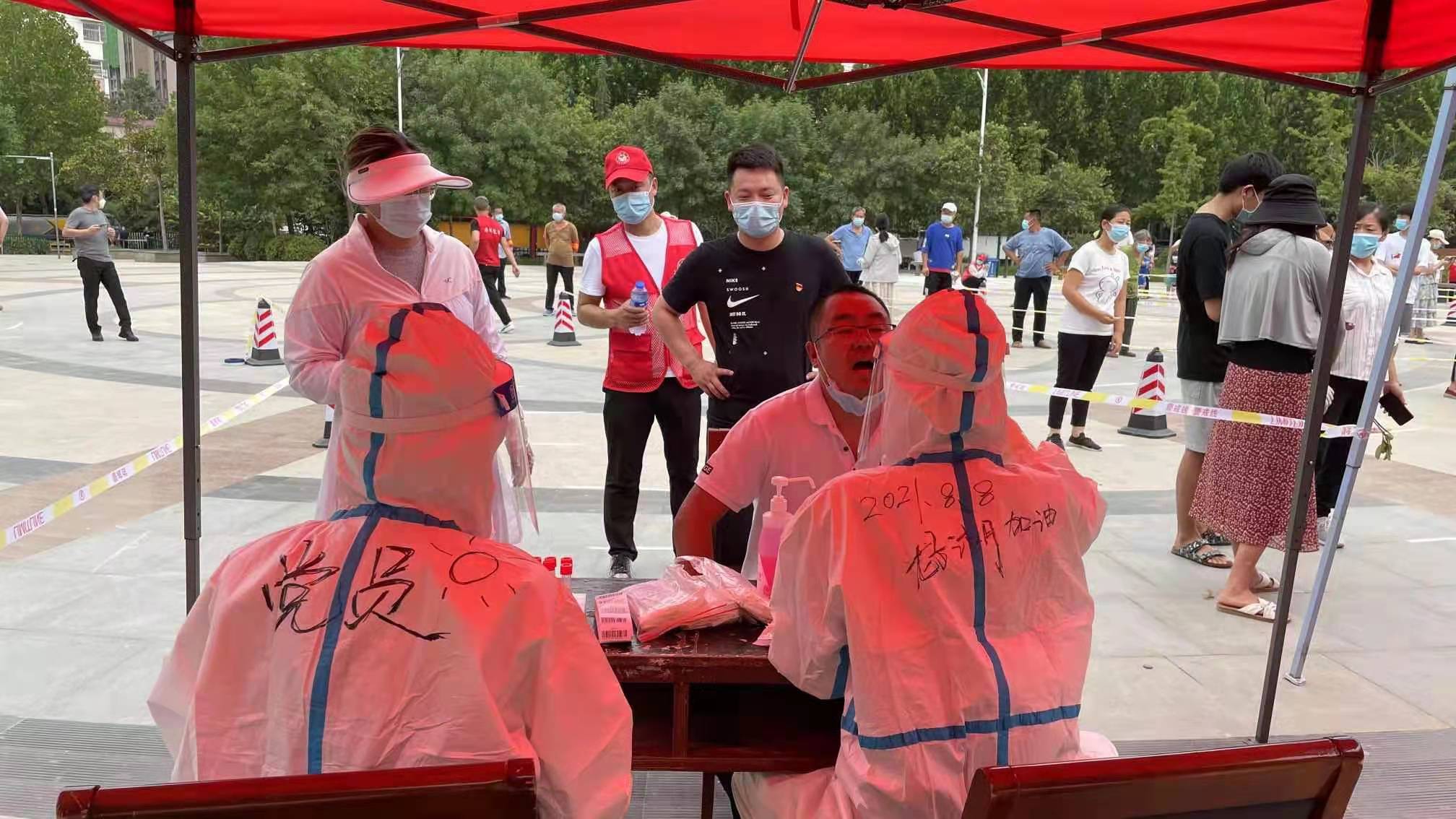 大河网讯 8月8日中午,河南省儿童医院党员王媛所在的核酸检测小组到达龙子湖陈三桥社区,准备现场,穿防护服,随后迅速投入到紧锣密鼓的核采工作中。今天是她第二次支援这个社区,许多居民,尤其是小朋友,王媛一眼就认出了,其中一位小朋友大声说道:阿姨您辛苦了,我爱你们!