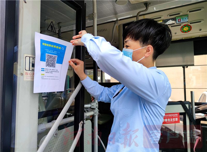 8月18日下午13点,记者来到郑州公交二公司,看到21路调度员申法娜正将车辆上张贴的“核酸检测查询二维码”贴纸揭掉,她告诉记者,接到通知后,我们下午首班公交车按规定执行新政策,乘客们只需扫码、戴口罩,不再提供核酸检测证明。