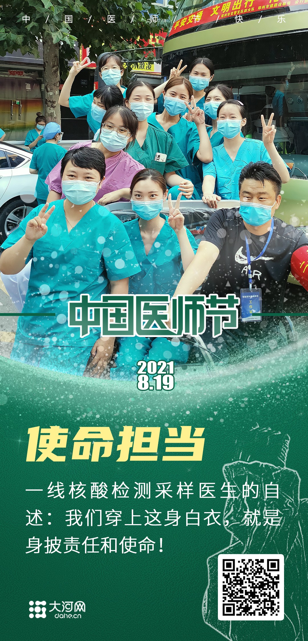 2021.08.19,郑州大学第五附属医院核酸检测一大队第十一次出征,恰逢第四个中国医师节!