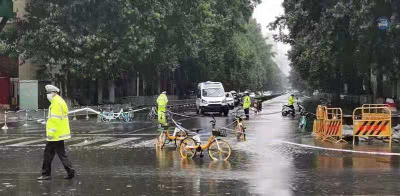 ·实时路况:郑州航海路京广路东西方向积水严重 樱桃沟、侯寨高速口均已封闭·实时路况:郑州合作路鑫苑景园路面积水达膝部