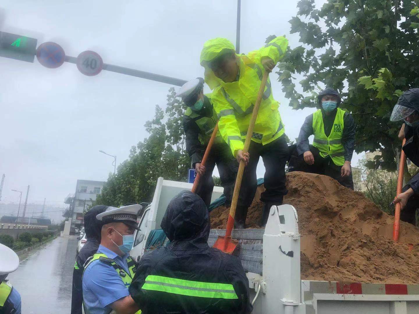 在金水路沿线,郑州交警一大队大队长王勇带领民警对堵塞的窨井盖进行快速清理,有助于积水及时流入。与此同时,对过往车辆进行有序的疏导。