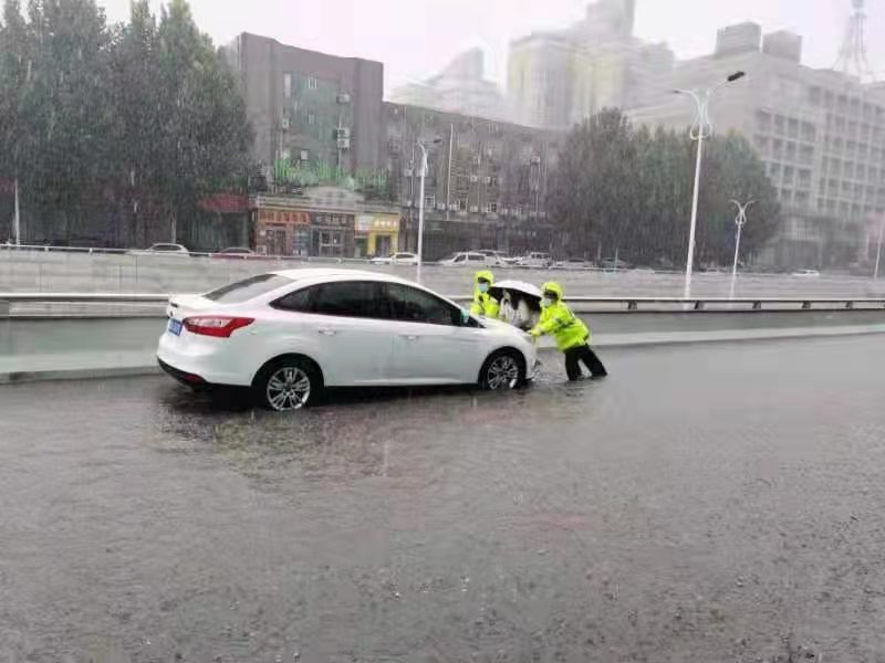同时,郑州交警一大队铁骑队员加大巡逻力度,并协同固定岗上的执勤交警对辖区内一些因涉水造成的故障车辆、人员进行紧急救援。