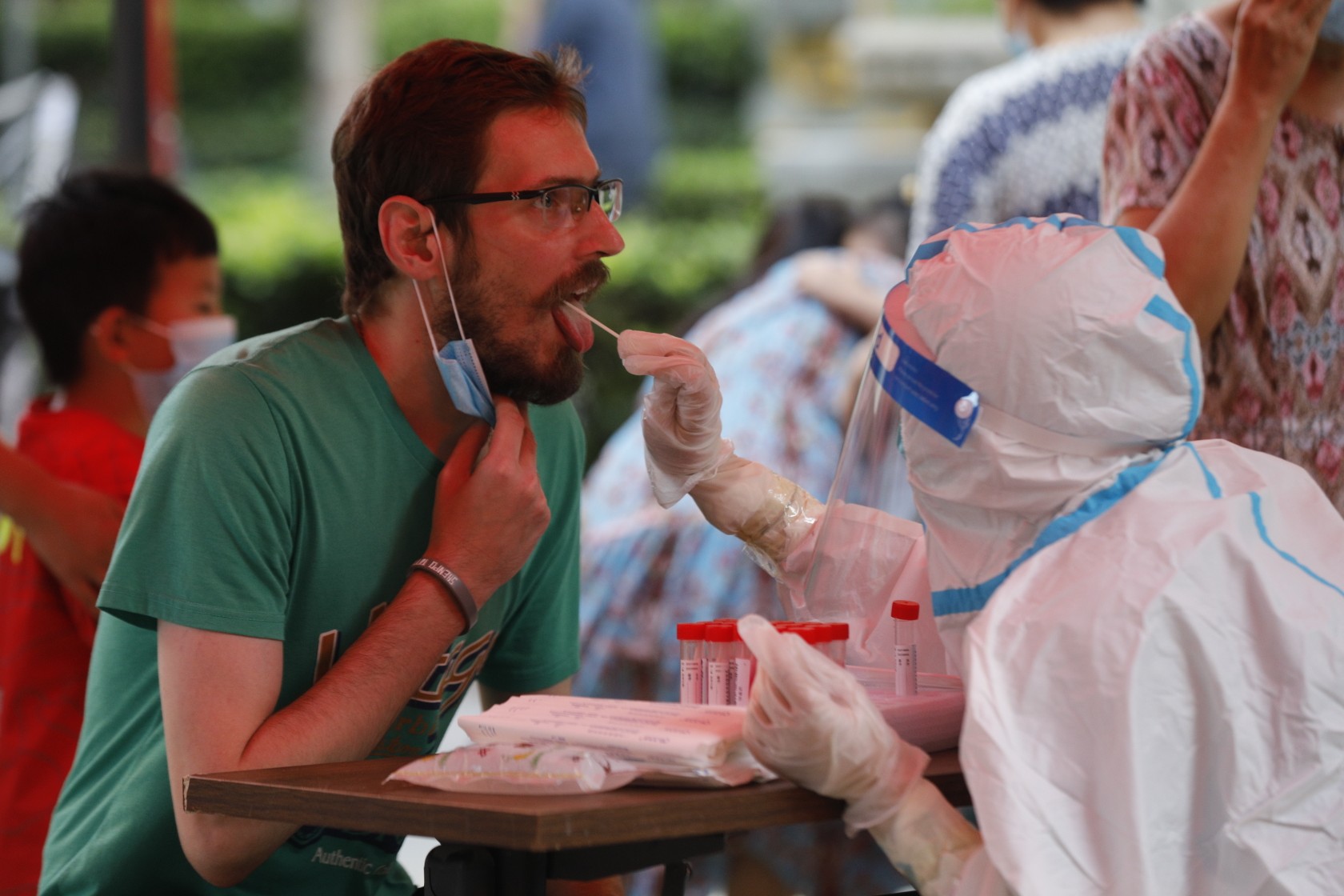 盛世雅居小区一位外籍人士正在接受核酸检测采样