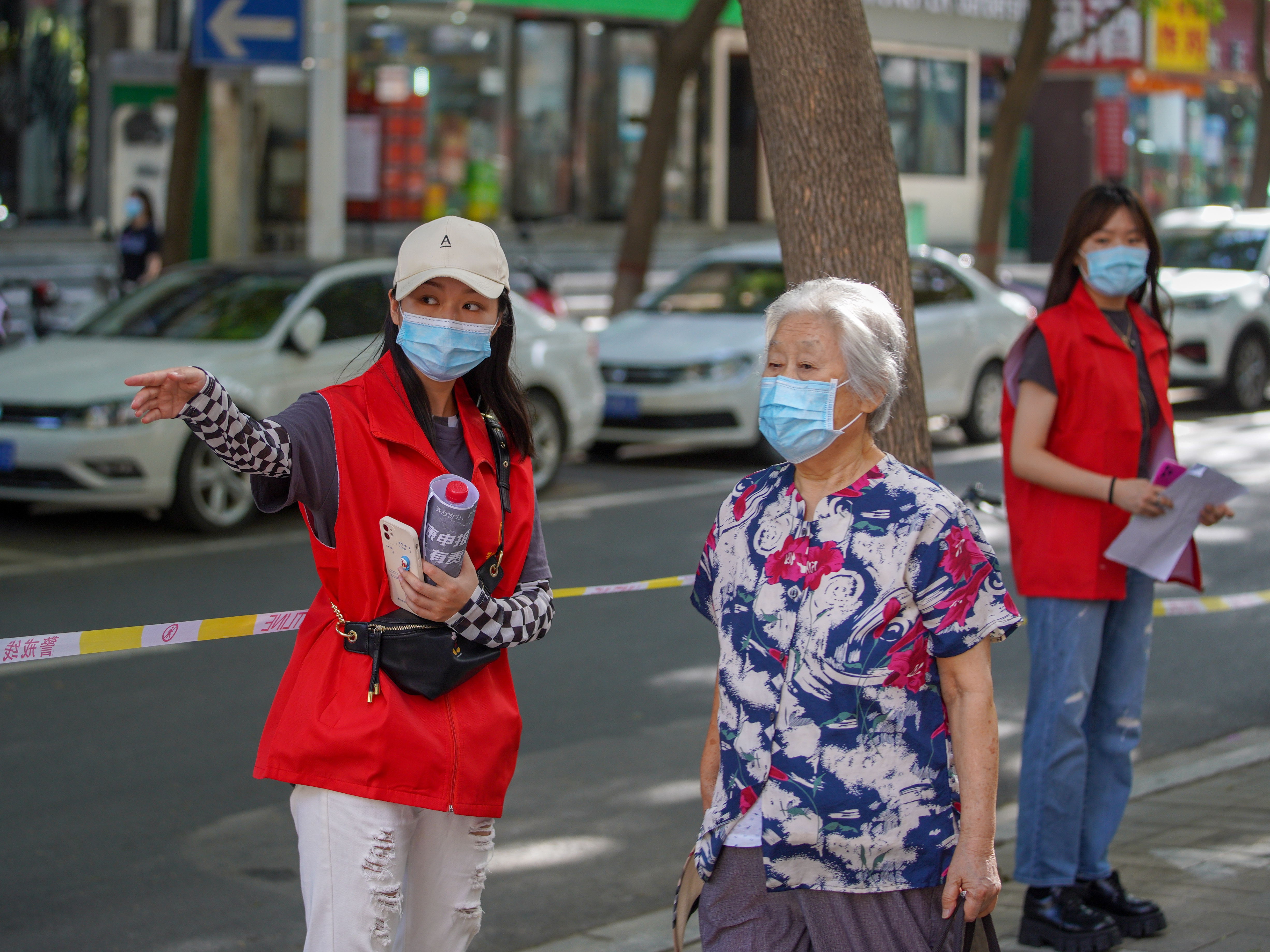 志愿者在核酸检测采样点维持秩序