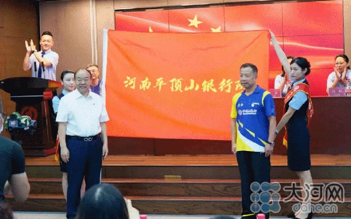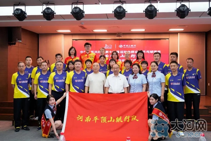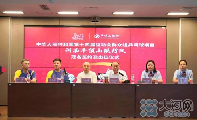 7月15日,中华人民共和国第十四届运动会群众组乒乓球项目预赛河南平顶山银行队冠名签约暨出征仪式在平顶山银行郑州分行隆重举行。与会人员共同欢送河南平顶山银行队队员出征,以昂扬的姿态挺进全运会乒乓球项目北方赛区预赛。