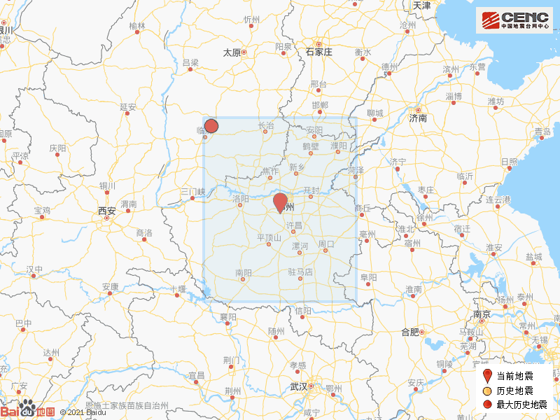 根据中国地震台网速报目录,震中周边200公里内近5年来发生3级以上地震共2次,最大地震是2021年4月8日在山西临汾市洪洞县发生的3.1级地震(距离本次震中254公里),历史地震分布如图。