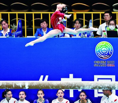 9月22日,全运会体操女子团体决赛在陕西省奥体中心体育馆举行。中国女子体操队队长刘婷婷、刚刚从东京奥运会归来的欧钰珊等运动员都是带伤上阵并坚持到最后一刻。