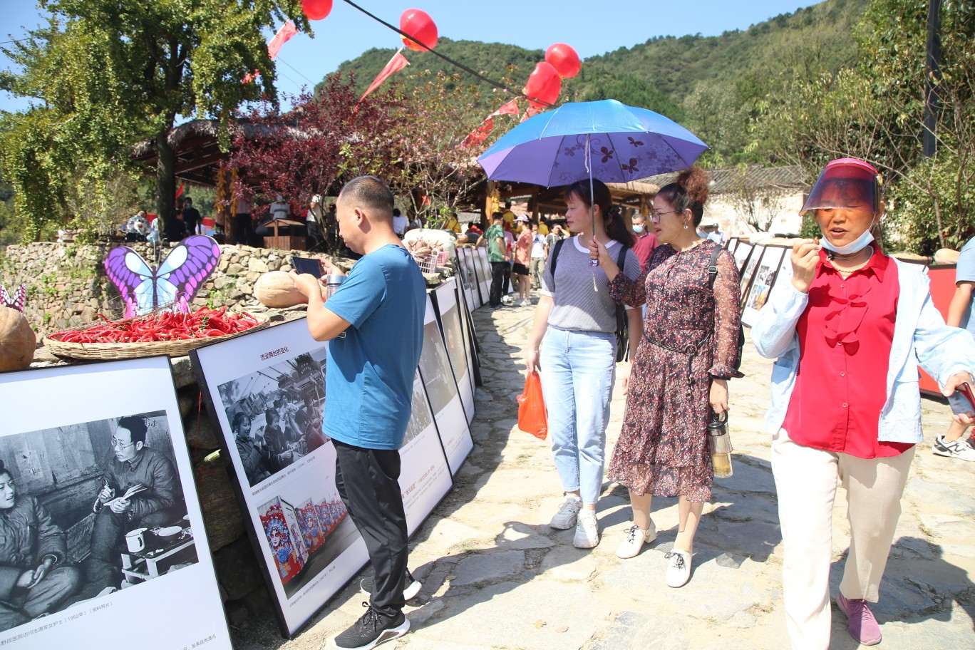 不单如此,乡村旅游大市集、大别山涉农非遗大市集、乡村文创大市集同样精彩。门口老街前,不仅有新县“九镇十八湾”的旅游景区推介,还有农业用具的展示。道路两旁,由“红色沃土、精神丰碑、时代楷模、今昔巨变、再铸辉煌”五个部分组成的“百年荣光”庆祝中国共产党成立100周年河南省优秀摄影作品展,吸引了大量群众驻足观看。