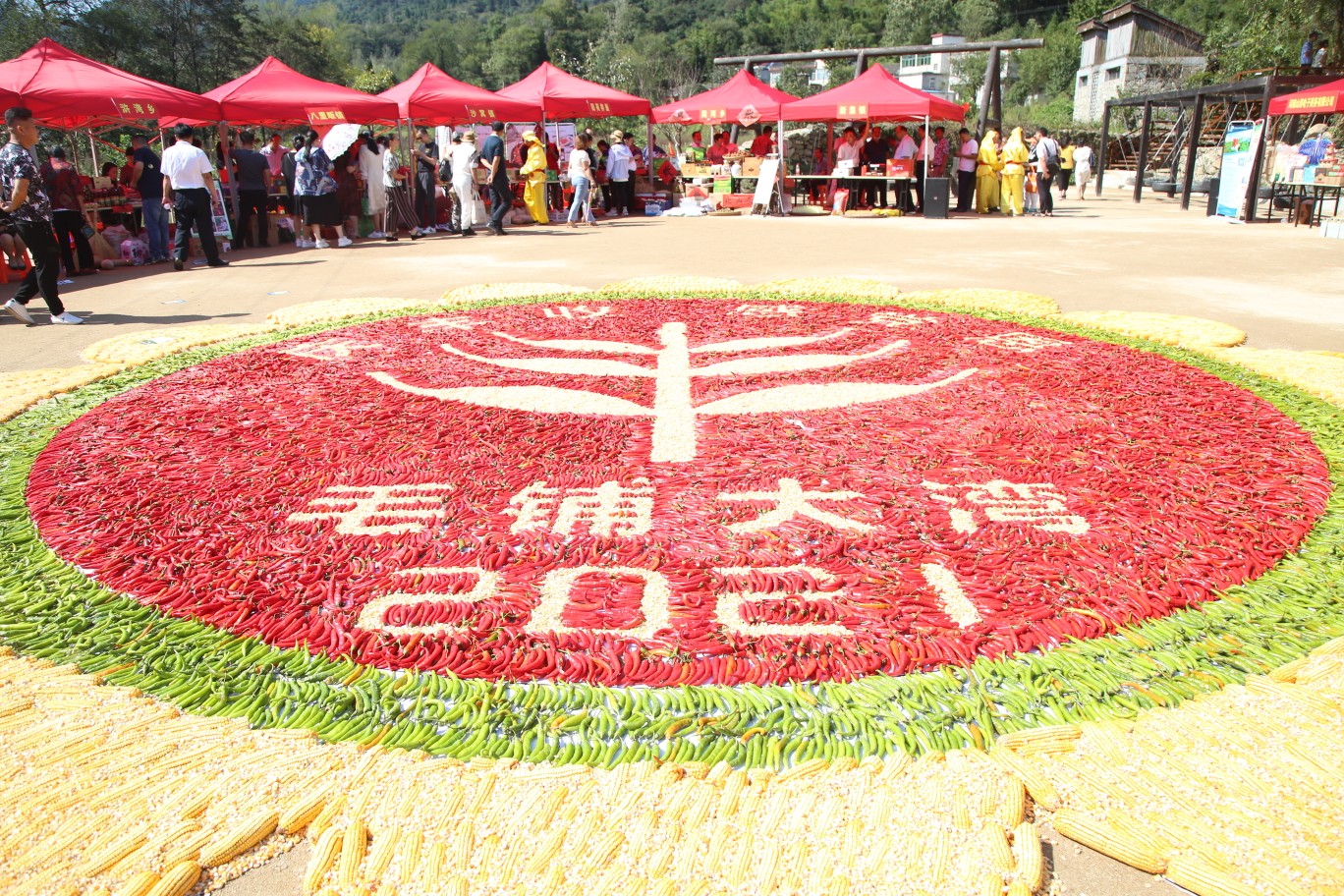 物阜民丰迎小康,丰收节里幸福长。主会场内,“感党恩庆丰收 全域旅游促发展”“学党史办实事 乡村振兴富百姓”等标语分外醒目;毛铺大塆南广场上,30余个红色帐篷围成一圈,由玉米和辣椒摆成的“丰”字造型正立圆心、引人注目,农民们绕“丰”而舞,金黄、火红和碧绿交相辉映,共同铺就了一幅色彩斑斓的“金秋画卷”。