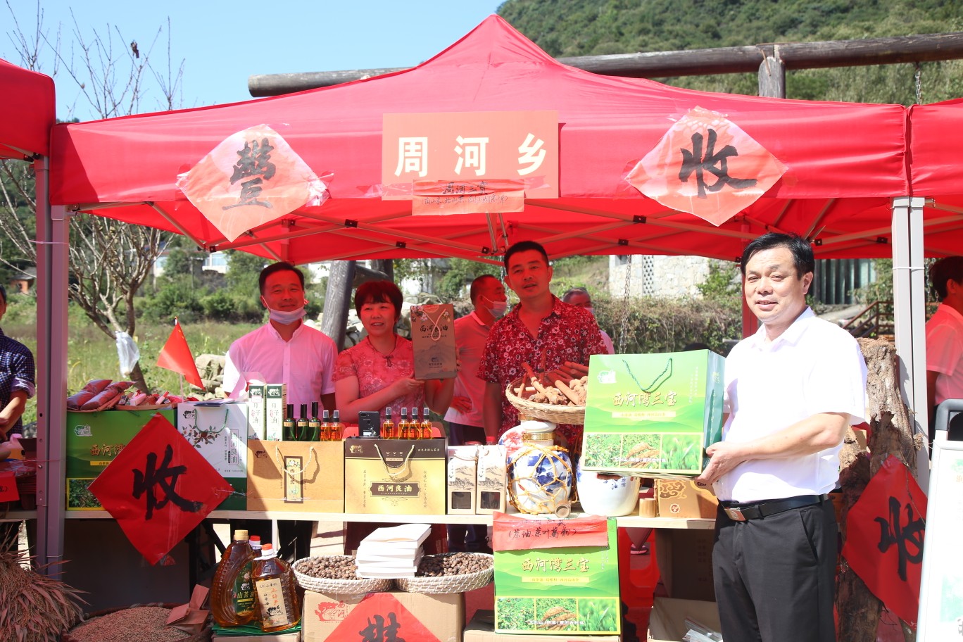 “我们西河有三宝——油茶、板栗和葛根粉,大家快来看一看、瞧一瞧啊。”刚刚作为农民代表发言的张思恩又马不停蹄地赶到周河乡的展示区吆喝了起来。