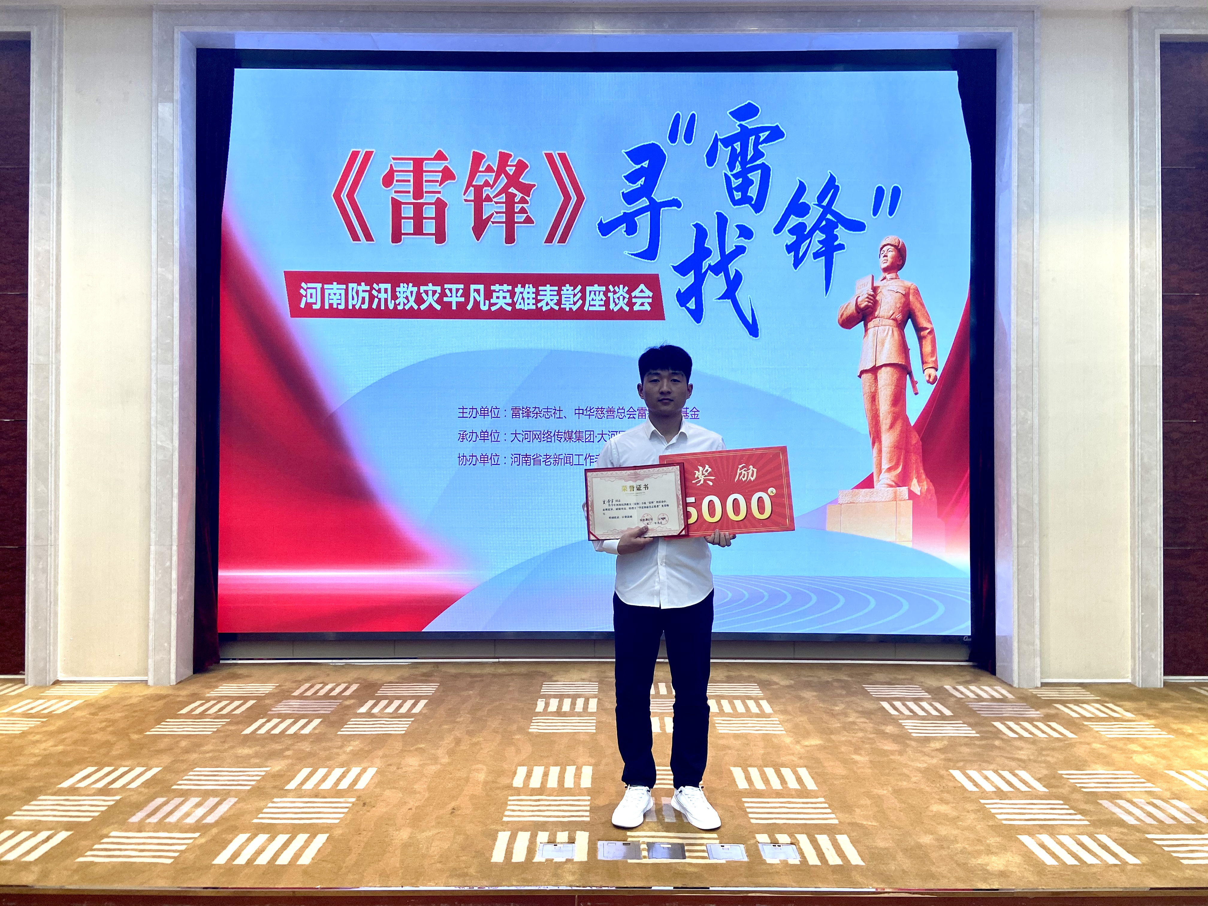 来自安阳市殷都区北蒙街道办社会事务办成员、小营村的包村干部贾泽宇,出生于1998年,是人们口中的“90后”。汛情期间,得知养老院外面道路上的水已经没到了腰间,他跳入水中,拿着绳子在路的两头系起了一个可以过人的“营救绳”。在一上午的营救当中,他把养老院45名老人安全地转移到提前准备的安置点,无一老人受伤。“在我看来,雷锋精神就是助人为乐而又不求回报的一种高尚品德。我在帮助他人的同时,自己也感到了快乐。雷锋精神存在于我们生活中每一个地方,小到公交车上让座,帮别人拎东西,大到帮助一个贫困家庭渡过难关。”作为获奖代表发言时,贾泽宇略显羞涩,但眼神坚定!