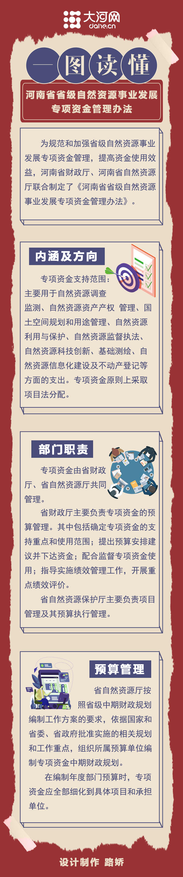 大河网讯(记者 路娇)近日,记者从河南省财政厅获悉,为规范和加强省级自然资源事业发展专项资金管理,提高资金使用效益,河南省财政厅、河南省自然资源厅近日联合印发《河南省省级自然资源事业发展专项资金管理办法》(以下简称《办法》)。