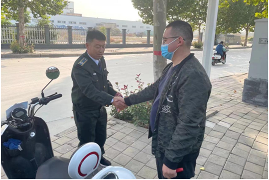 大河网讯 “这是谁的电动车啊?通着电,钥匙还没拔。”巡防队员贺红亮大声喊了几声却没人回应。10月25日上午9时,郑州市金水区杨金路街道巡防队员进行日常巡逻时,在公交站牌发现路边有一辆无人认领的电动车。