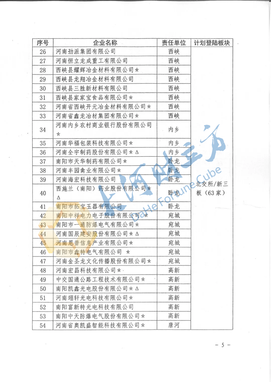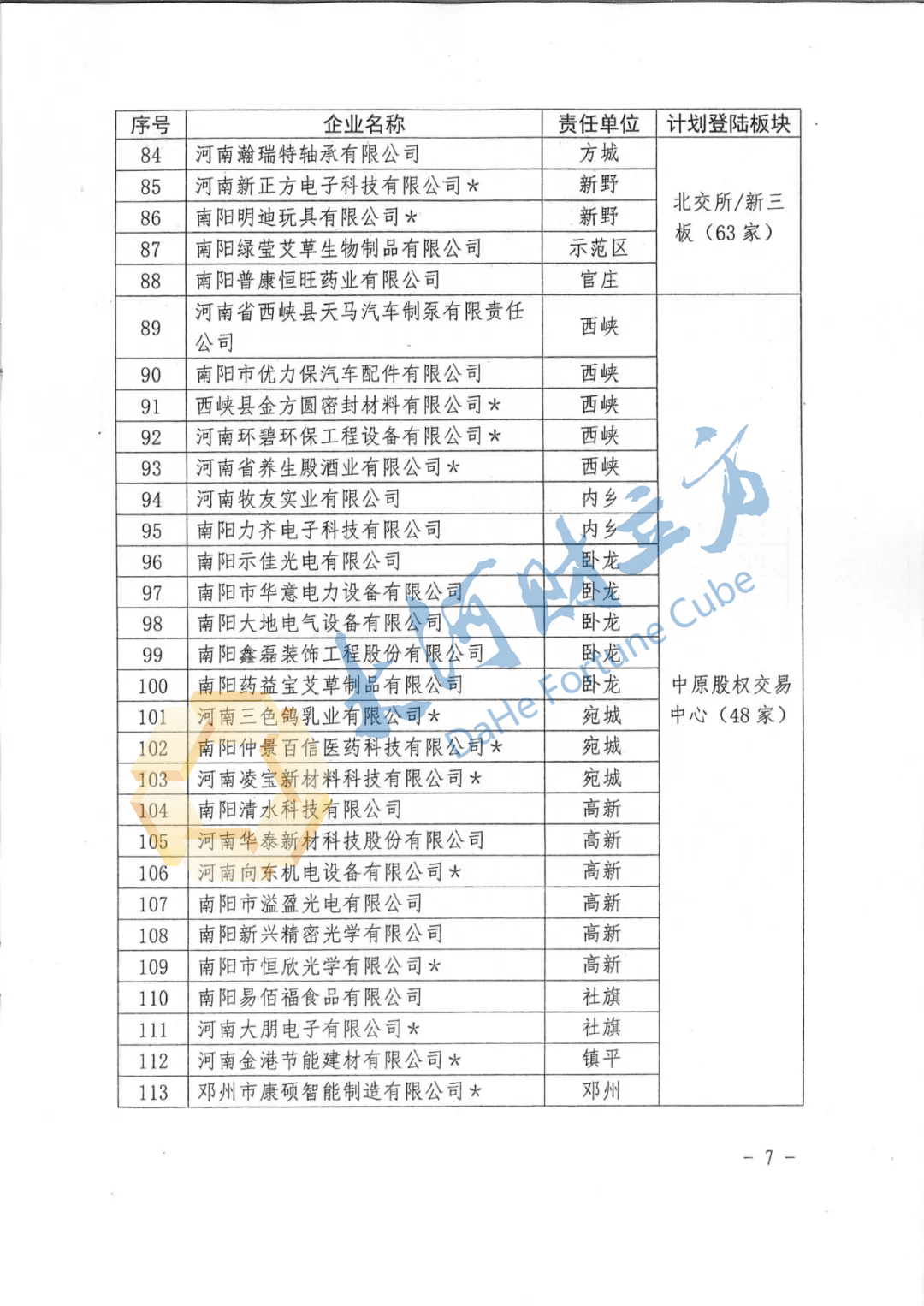 计划登陆主板/创业板/科创板及境外上市的南阳企业共25家,包括仲景宛西制药、南阳金牛彩印集团、想念食品等。计划登陆北交所/新三板的企业63家,计划登陆中原股权交易中心的企业48家。