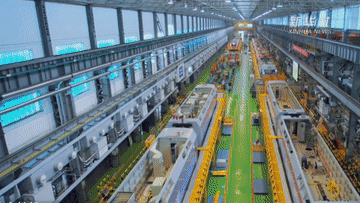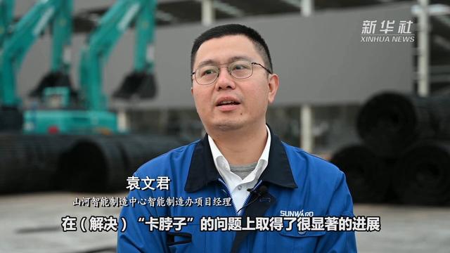 去年9月投产的山河智能中型挖机装配“智慧车间”,由于大量自动化、智能化“黑科技”的使用,一台挖掘机从固定、抬升、翻转到降落、下线,过去需要70分钟,如今30分钟即可完成下线。