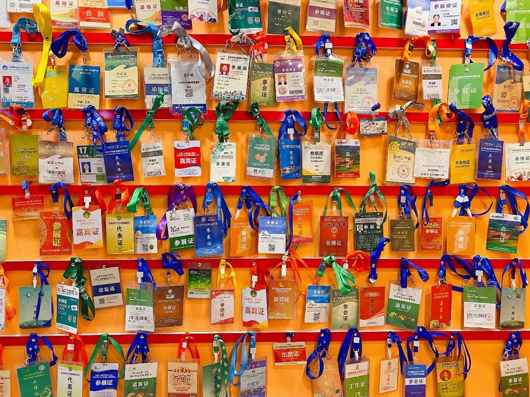 ▲这一墙参展证是万荣苹果、运城苹果的“金名片”。郝曼|摄