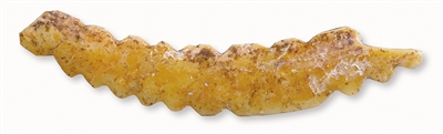 这枚野猪獠牙雕刻的蚕雕,长6.4厘米,宽不足1厘米,厚0.1厘米,背凸腹凹,头昂尾翘,呈绷紧的“C”形姿态。“珍贵在它的形态。”顾万发说,首先它很肥硕,不像野蚕那么瘦小,与现在家蚕结构几乎完全一致;其次它不是“S”“L”“Z”形态的走蚕或其他形态,而是即将吐丝或正在吐丝的“C”形姿态。“这枚牙雕家蚕还有明显打磨痕迹,目的可能就是使它更透明、泛黄,接近于吐丝时的状态。”顾万发说。
