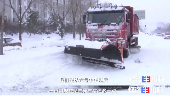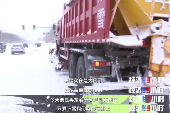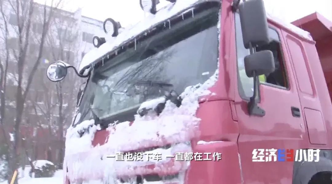 鲍伟明是通辽市环卫处的一名雪铲车司机,他每天的工作就是在霍林河大街上不间断地开展路面清雪工作。自11月6日通辽市持续降雪以来,他和工友们都已经在各自的铲雪车上待了72个小时了。