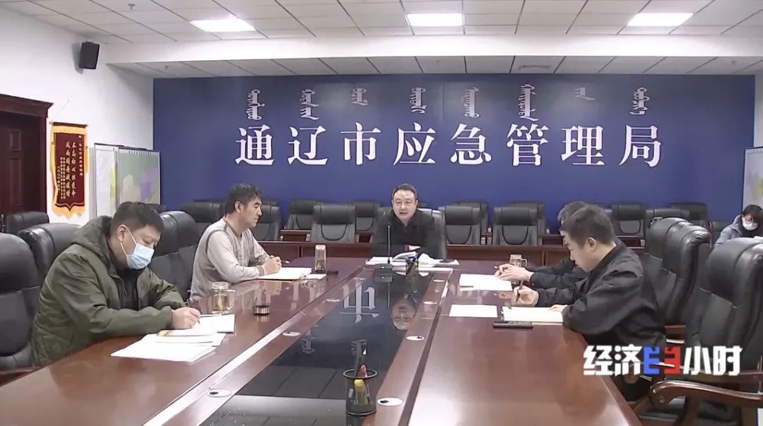 在通辽市应急管理局值班调度室,值班工作人员正在通过电话密切关注各旗县市区极端天气应对处置进展情况。