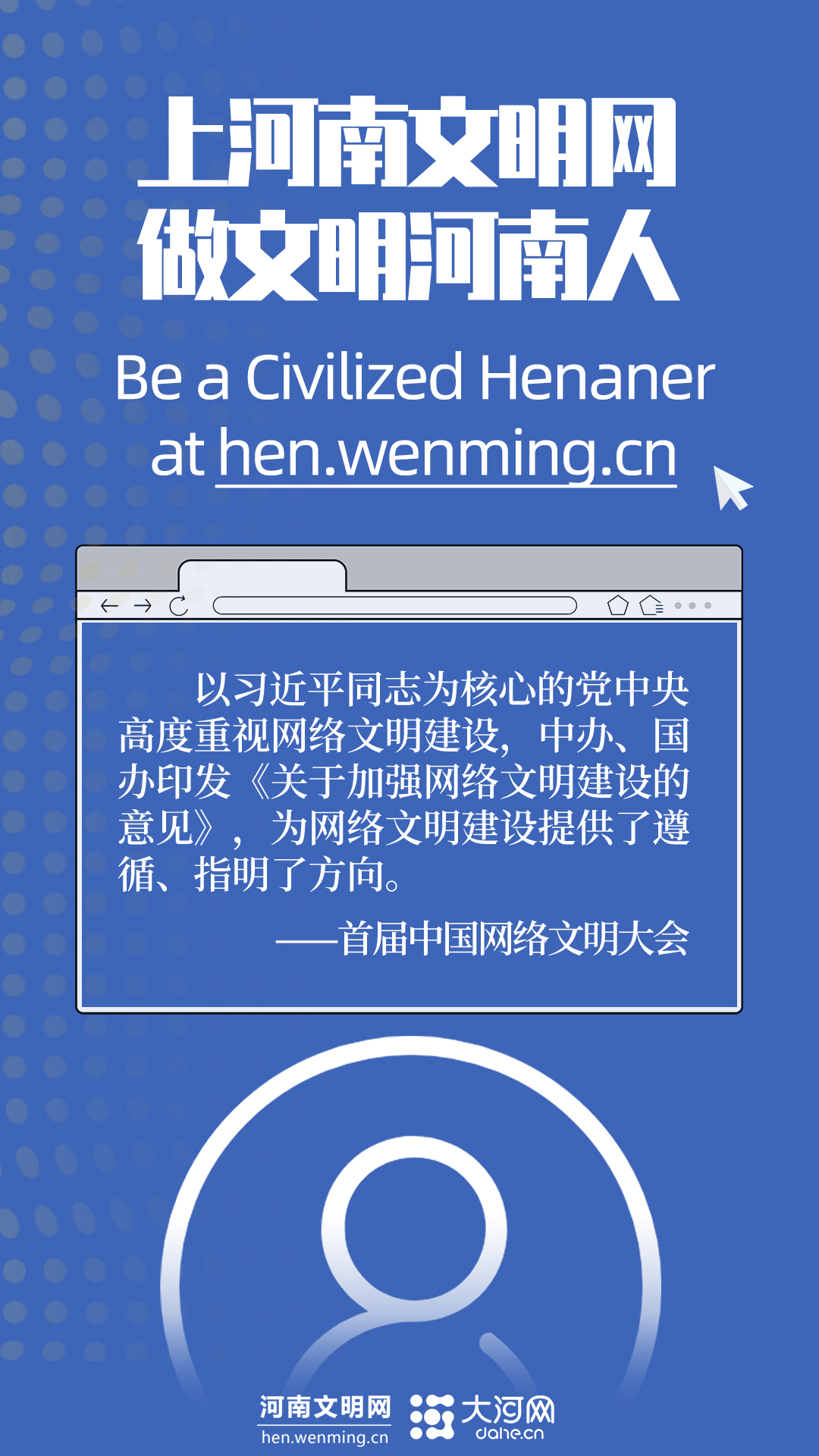 编者按:11月19日,首届中国网络文明大会在北京举办,大会发布了新时代网络文明建设十件大事。河南文明网联合大河网推出《文明e语》系列双语海报,汇聚向上向善力量,携手建设网络文明。