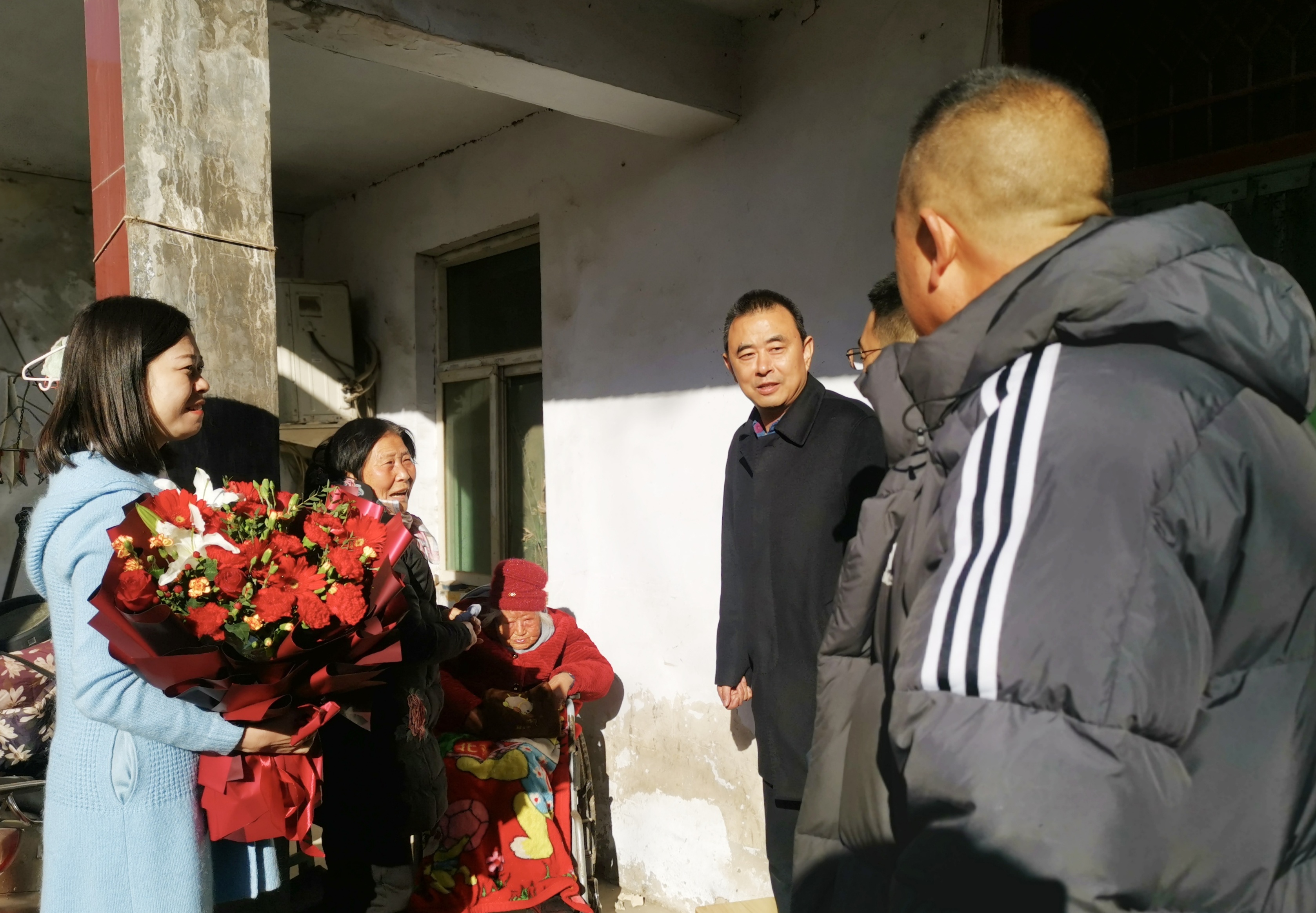 大河网讯 12月21日上午,郏县县领导杨凯与广阔天地乡负责同志一行人来到该乡桃园铺村,为百岁老人吴妮送上100岁生日祝福,并送上鲜花、蛋糕、慰问金、衣服等物品为百岁老人吴妮庆祝生日。(蔡长伟 王煜雨)