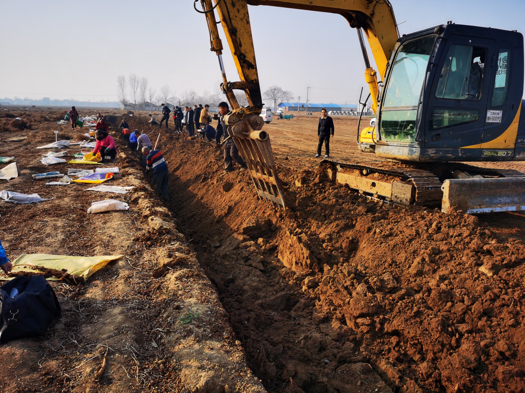 大河网讯 (记者 宋向乐)12月22日,河南温县村民将挖掘机开到地里,原先他们用铁锹人工刨土,一亩地要挖十几天,现在省力多了,不到一天就能挖完一亩地。