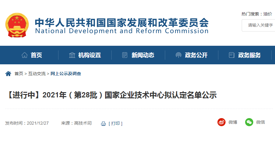 大河网讯(记者 何心悦)12月30日,记者从国家发展改革委网站获悉,2021年(第28批)国家企业技术中心拟认定名单已在公示,河南省矿山起重机有限公司等4家企业入围。公示期为2021年12月27日—2022年1月2日。
