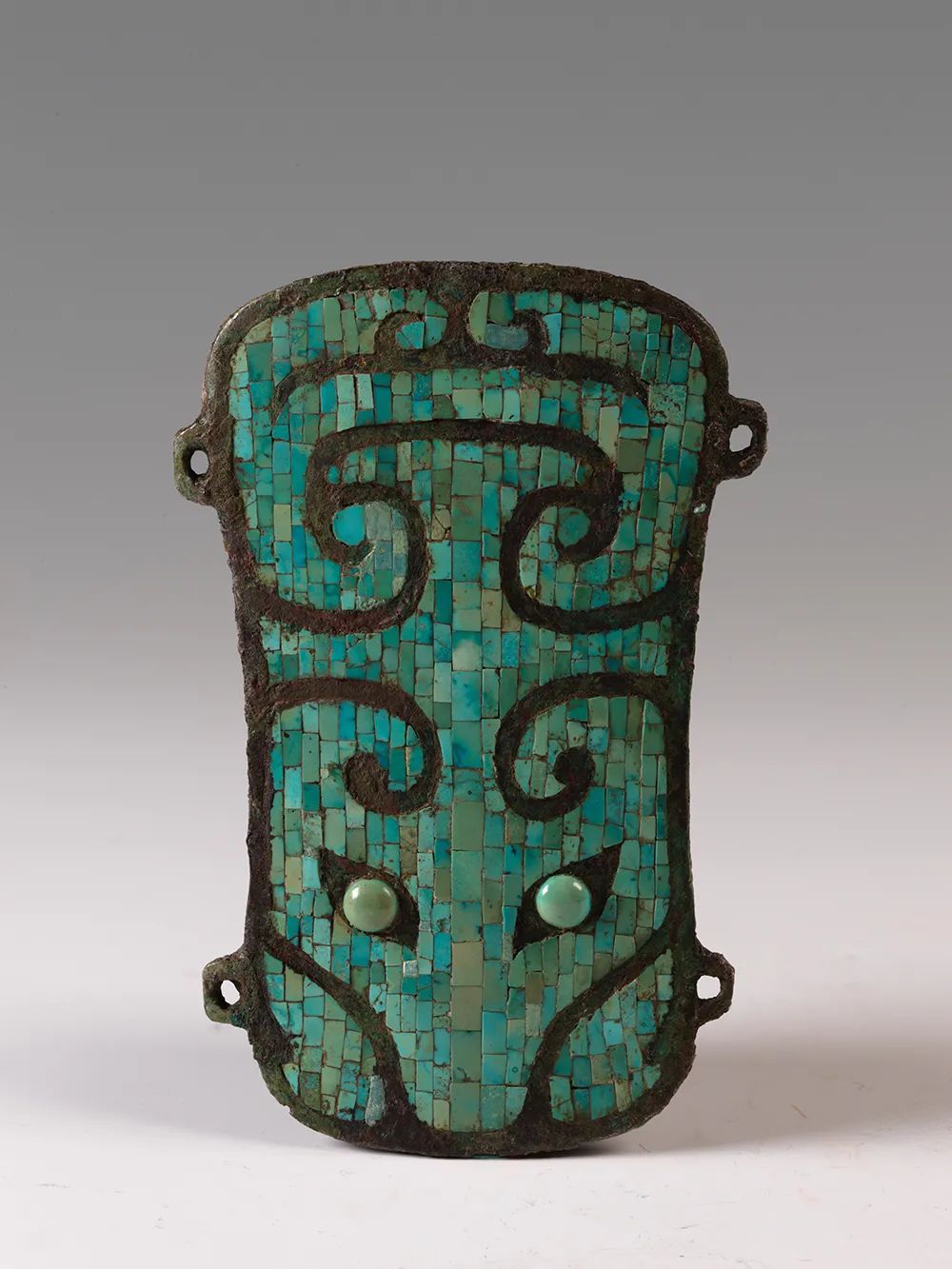 河南偃师二里头遗址出土的嵌绿松石兽面铜牌饰是一种主要流行于夏代的青铜器,以镶嵌绿松石为最大特征,是集铸造和镶嵌于一身的神秘艺术品。它是史前兽面纹到商周饕餮纹的中介和传承,这种传承不仅是沿用了一种艺术传统,而且是传承了信仰和神话。所以,可以毫不夸张地说,镶嵌铜牌饰对于研究中国文明起源具有重要的学术价值,是名副其实的夏代遗宝。