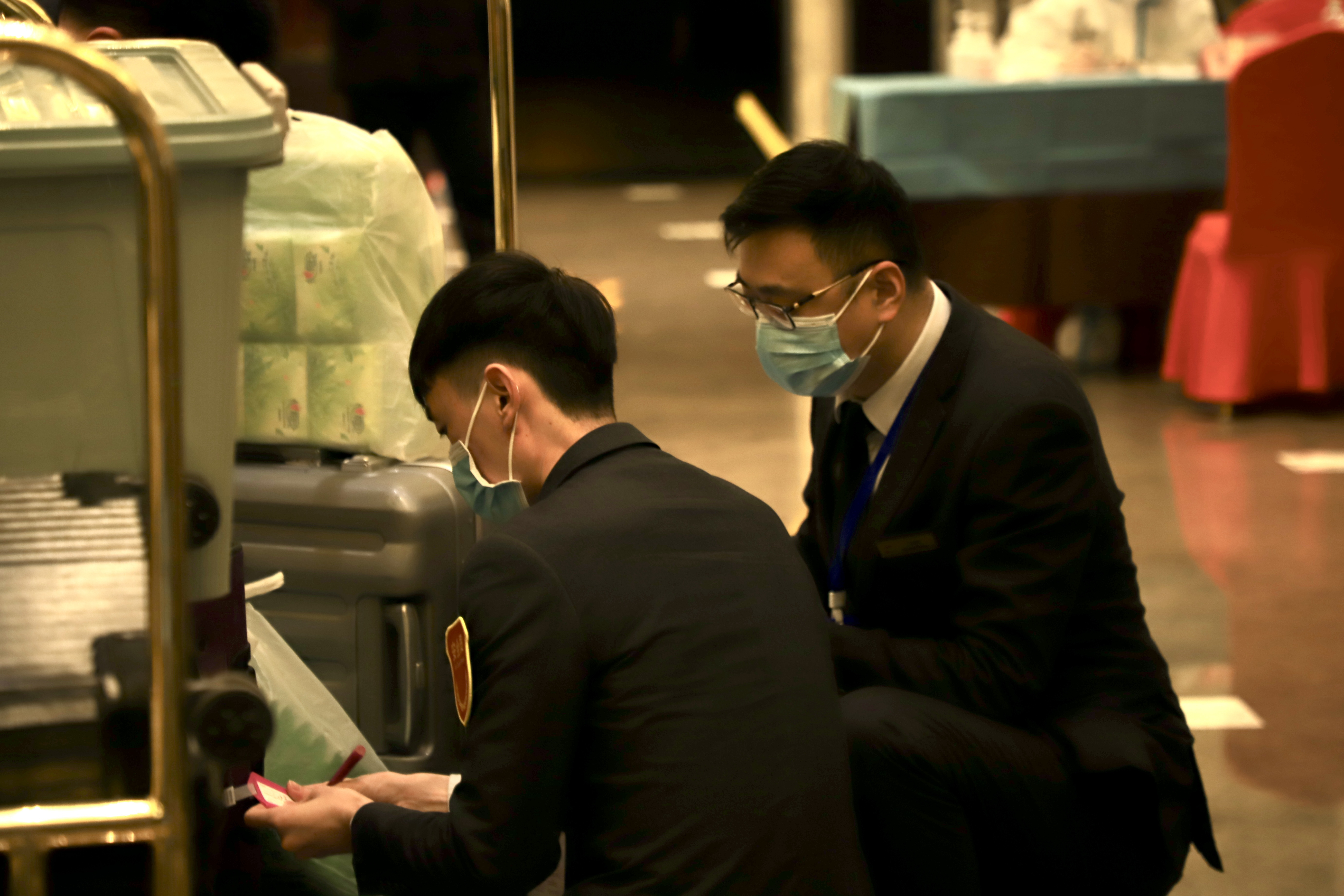 工作人员整理行李