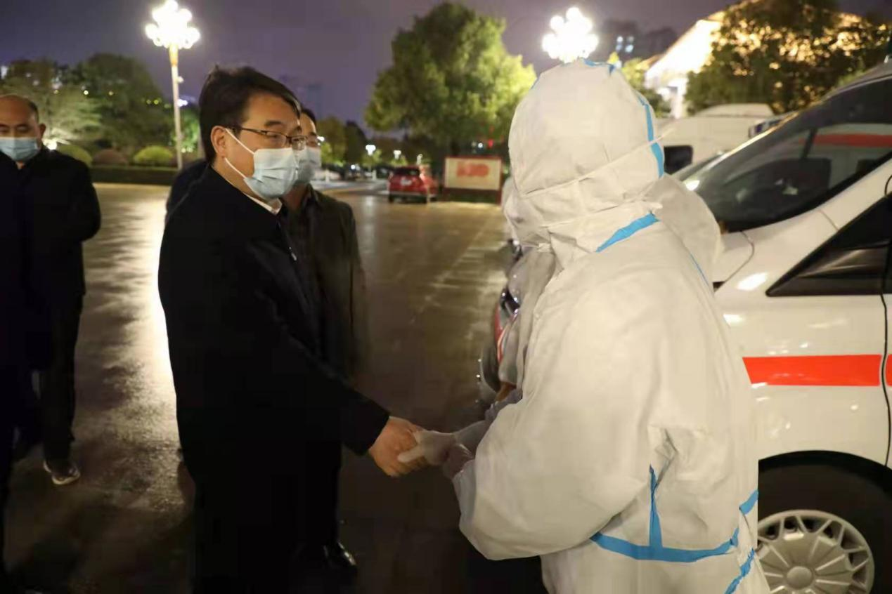 大河网讯 “出征!”1月5日夜晚7:30,随着信阳市淮滨县委书记梁超一声令下,淮滨县支援固始疫情防控队伍在淮滨县行政新区广场逆行出征!