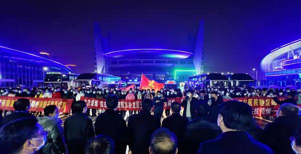 当晚10时,南阳市县区卫健体委系统的部分领导、医院院长、医护家属等近百人,在南阳市体育中心内,为这千余名披甲出征的白衣勇士举行了一场简短而隆重的出征仪式。