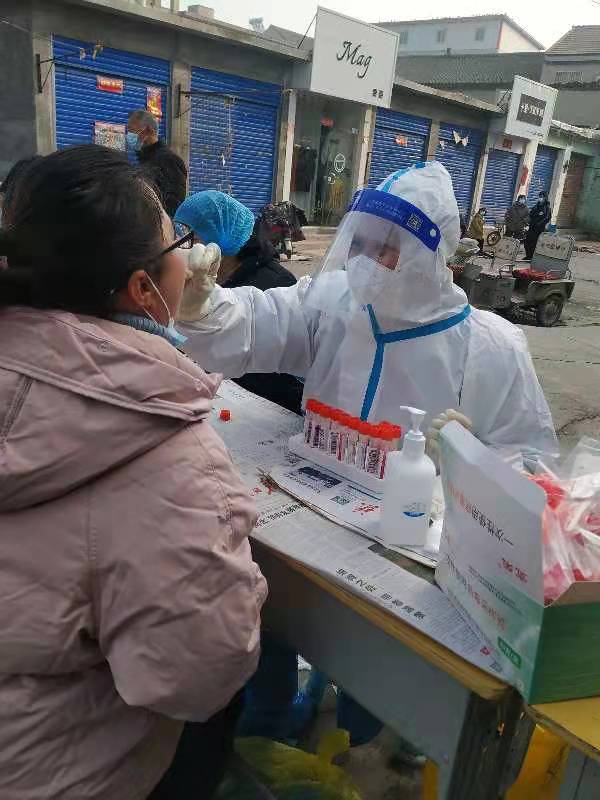 1月10日,林州市启动全员核酸检测以来,栗敏和同事们负责的核酸采集点每天都有数千人的核酸检测任务。每天早上不到5点,她就早早起来开始各项准备工作,一天工作下来,两只手臂几乎都无法举起。