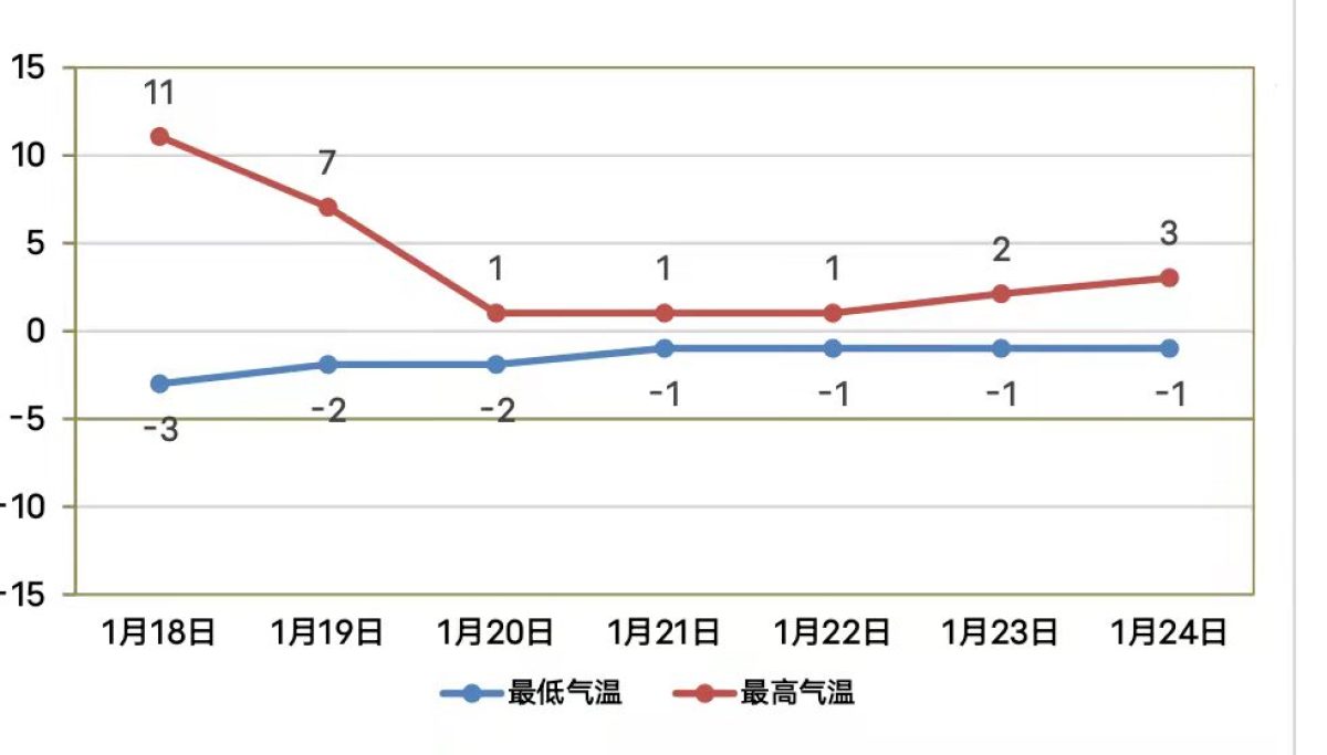 受冷空气和雨雪天气影响,20日至23日,气温持续偏低,最高气温1℃左右。