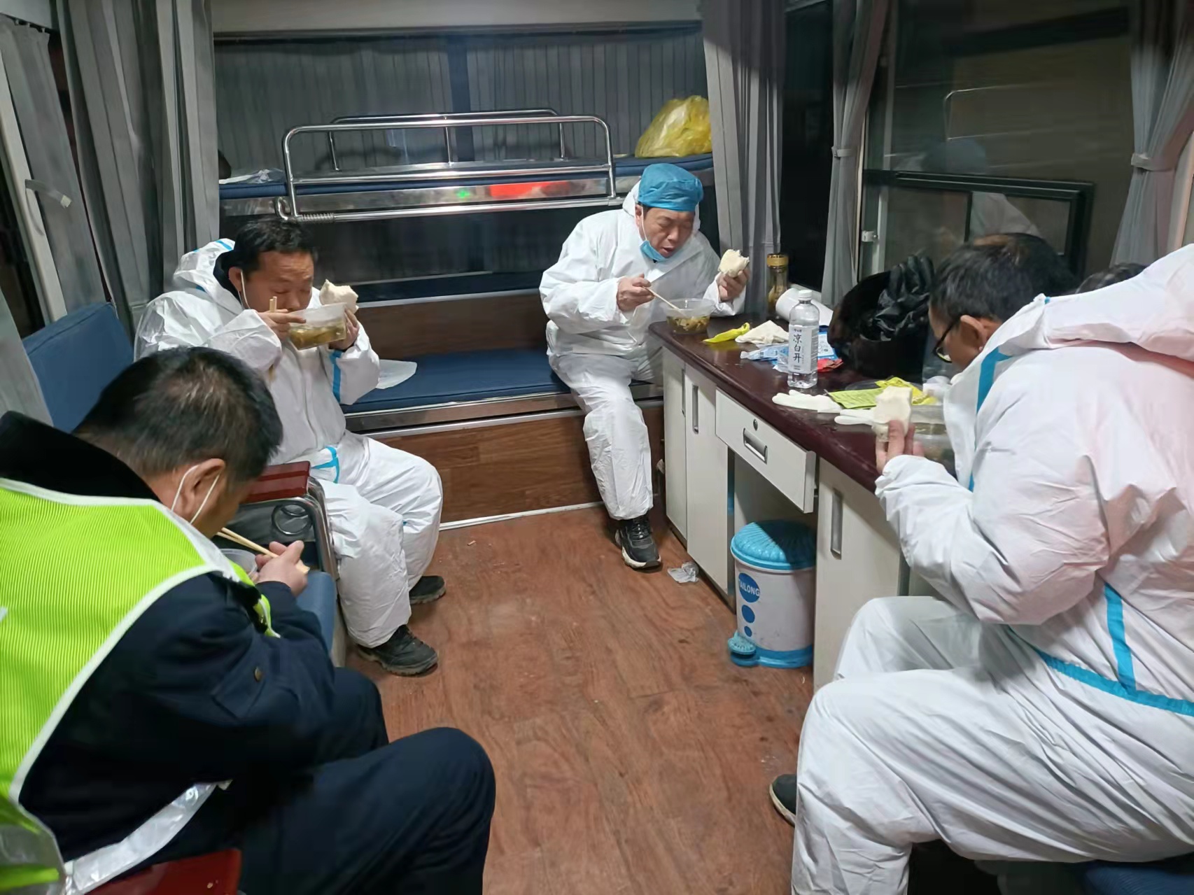 为解决卡点人员的就餐问题,该镇就近协调用餐点一处,使得共计五个单位30余名卡点工作人员一日三餐得到有力保障,方便面、水、防寒用品等生活物资充足供应。随着气温下降,该镇考虑到卡点夜班人员工作辛苦,决定每晚零点再加餐一顿,由镇政府工作人员负责运送,给卡点人员打气、加油,让执勤人员身暖、心暖。