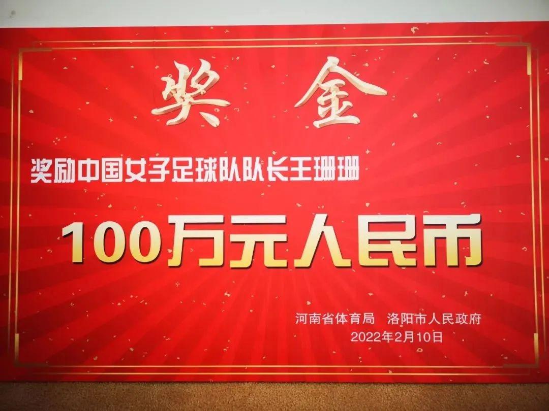 大河网讯(记者 莫韶华)2月10日,河南省体育局、洛阳市政府共同奖励中国女子足球队队长、洛阳籍球员王珊珊100万元。