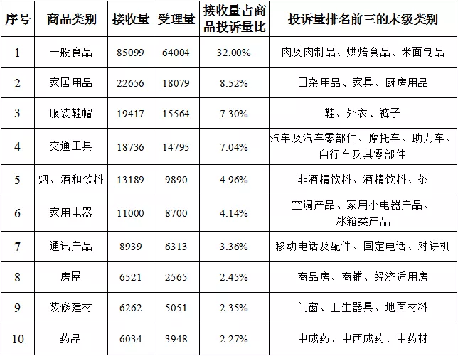 投诉: 商品消费类投诉最多 食品类投诉位列第一