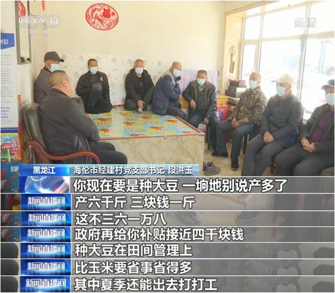 海伦市经建村村民 邵广金:肯定种大豆了,而且今年补贴还挺多,我们收入也提高了,也为国家作贡献了。