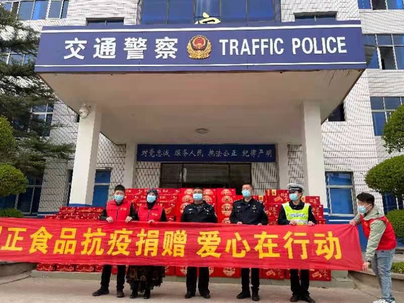 3月26日,是明正公司走访慰问活动最忙的一天。当日,公司分成两组,一组由韩精彩带队对城区交警执勤点进行慰问。另一组则由公司总经理李道峰带领公司5名志愿者到公安局开展慰问。经过一天的紧张走访慰问,明正公司共为全县30多个疫情防控卡点送去了近1000件、价值10万多元的明正休食牛肉。