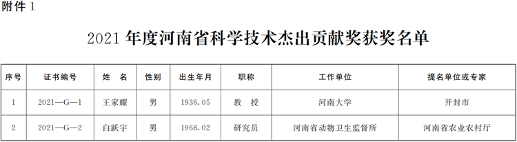 1.2021年度河南省科学技术杰出贡献奖获奖名单