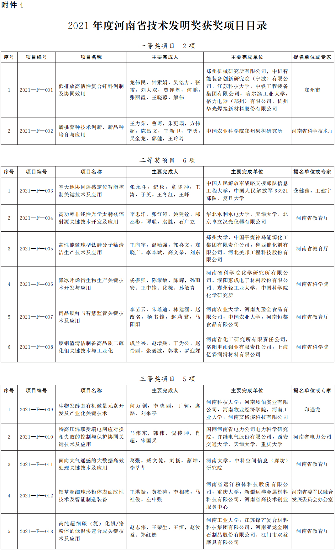 5.2021年度河南省科学技术进步奖获奖项目目录
