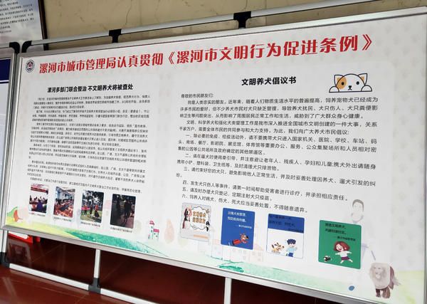 针对群众意见多的市区不文明养犬行为,漯河市出台了《漯河市不文明养犬专项整治工作方案》,成立了不文明养犬专项整治工作领导小组,劝导不文明养犬行为3000余起,接听市民热线投诉数百条,均做到事事有回应、件件有落实。