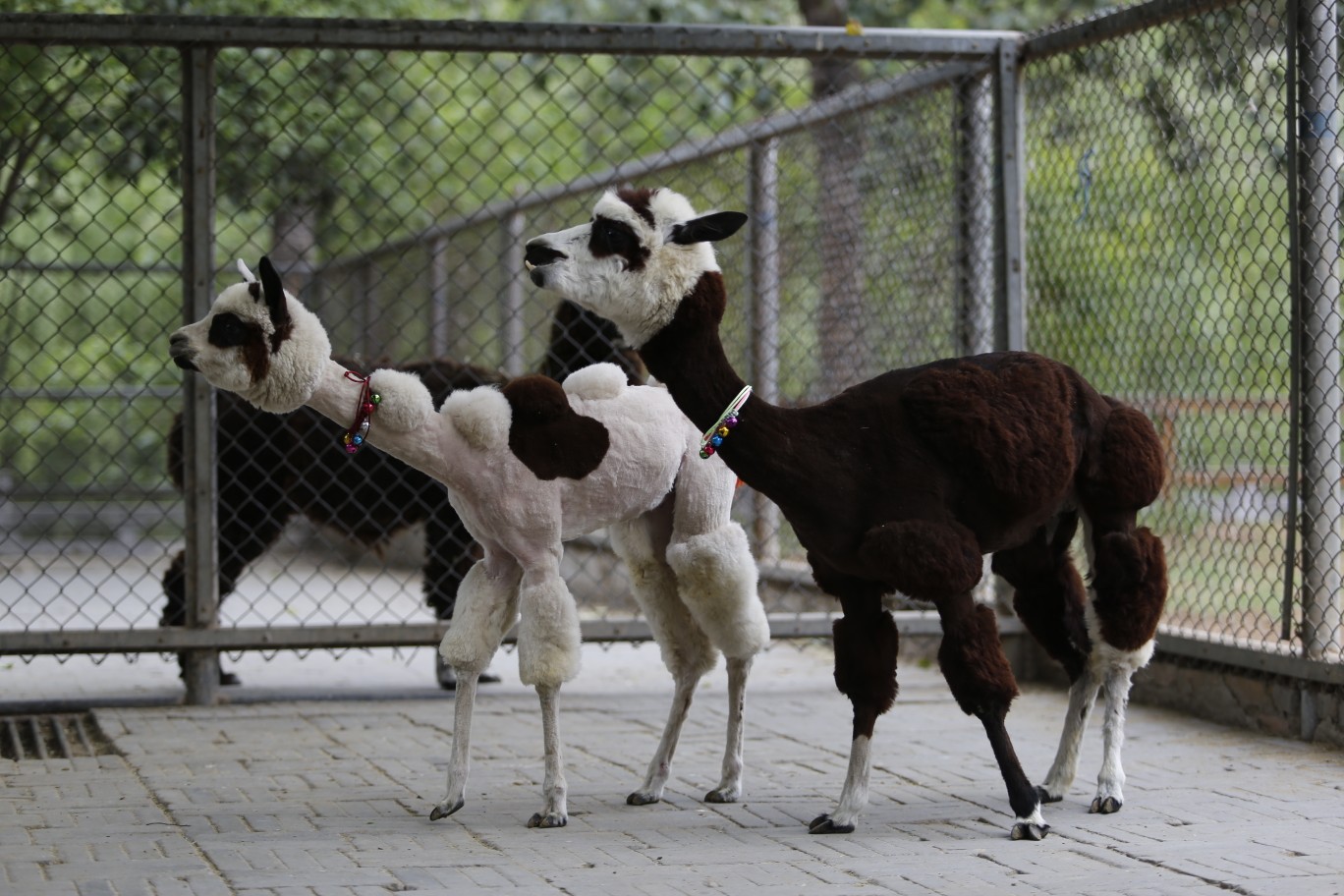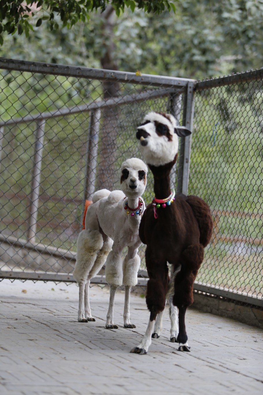 临近夏季,羊驼毛发厚重,不利于身体散热,再加之母子俩长相较为特别,为让母子俩以更高颜值清凉度夏,4月27日,王城公园工作人员请来专业理发师,为这对羊驼母子“美发”换造型。经过四五个小时的修剪,羊驼母子脱掉厚重的“棉衣”,换上了霸气的“恐龙”造型,以崭新的面貌迎接五一。五一期间,王城公园将围绕这对羊驼母子开展一些动物科普类活动,欢迎大家来看看这对可爱的羊驼母子。(张晶晶/文图)