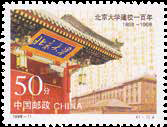 北京大学红楼是五四运动的策源地。1998年中国邮政发行的《北京大学建校一百年》纪念邮票上,展示了这座具有光荣革命传统的近代建筑。北京大学红楼原为北京大学第一院,始建于1916年,落成于1918年,通体红砖砌筑,红瓦铺顶,砖木结构,平面呈工字形。它是新文化运动的大本营、五四运动的发源地、中国共产党早期重要活动地,现已辟为北京新文化运动纪念馆。