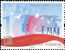 2019年5月4日,中国邮政发行《“五四”运动一百周年》纪念邮票。邮票图案名称分别为:传承“五四”精神、奋进新时代。第一图以天安门广场人民英雄纪念碑《五四运动》汉白玉浮雕和“五四”青年为典型形象。邮票第二图以新时代青年的剪影和代表国家富强、经济发展、社会进步的形象元素,表现了青年一代昂扬向上,奋进新时代的风采,寓意“新时代青年要乘新时代春风,在祖国的万里长空放飞青春梦想”。