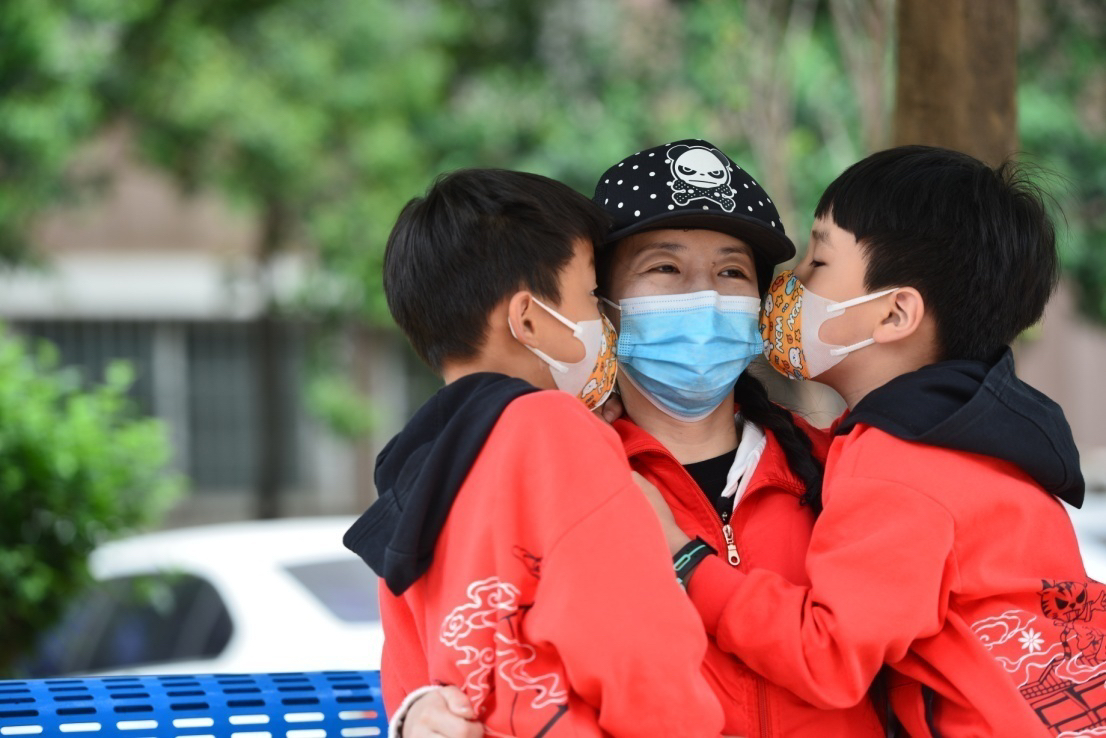 母亲节当天采样结束后,双宝和妈妈在一起的幸福时光