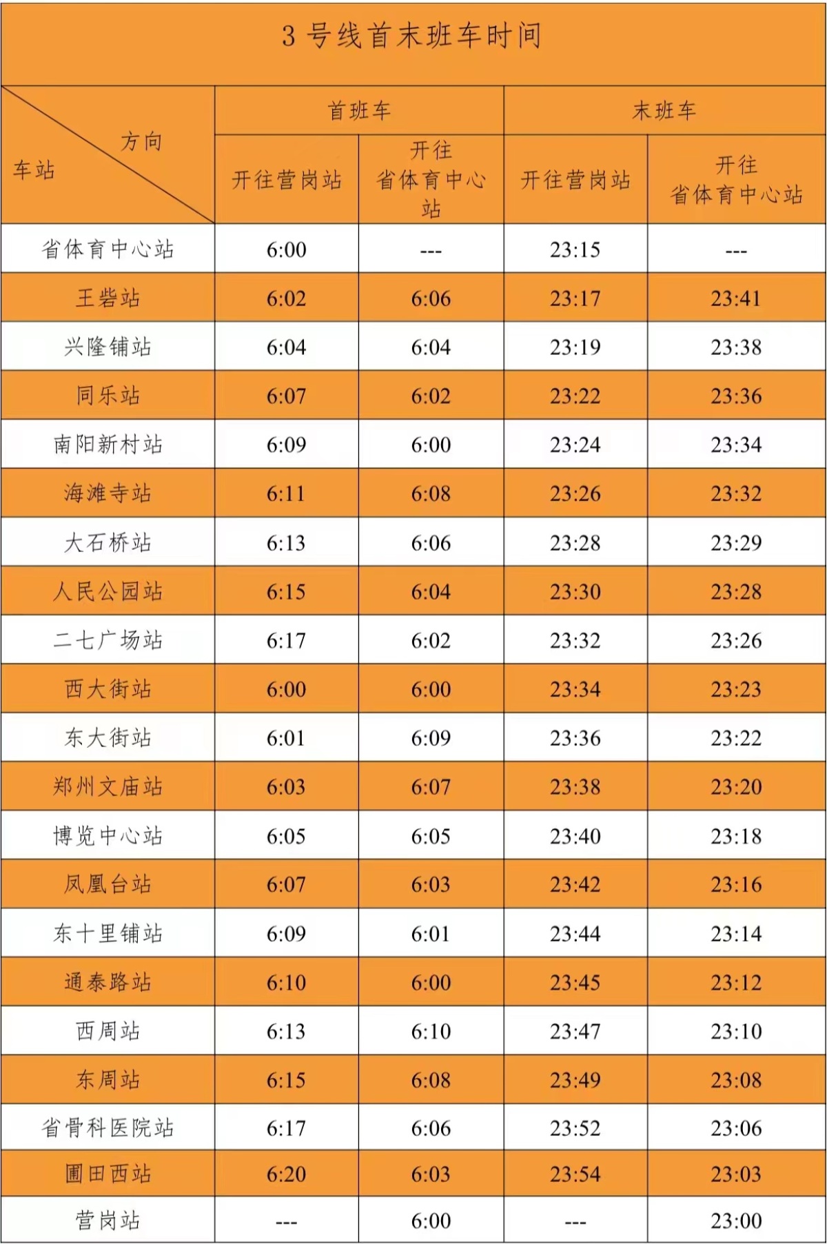 根据《郑州市新冠肺炎疫情防控指挥部办公室关于调整封控管控区域的通告(2022年93号)》要求,切实履行社会责任,保障市民出行安全便捷,自5月14日起,郑州中建深铁3号线二七广场站、人民公园站恢复正常运营。至此,3号线全线车站恢复正常运营。运营服务时间为06:00-23:00,行车间隔维持全天10分钟。