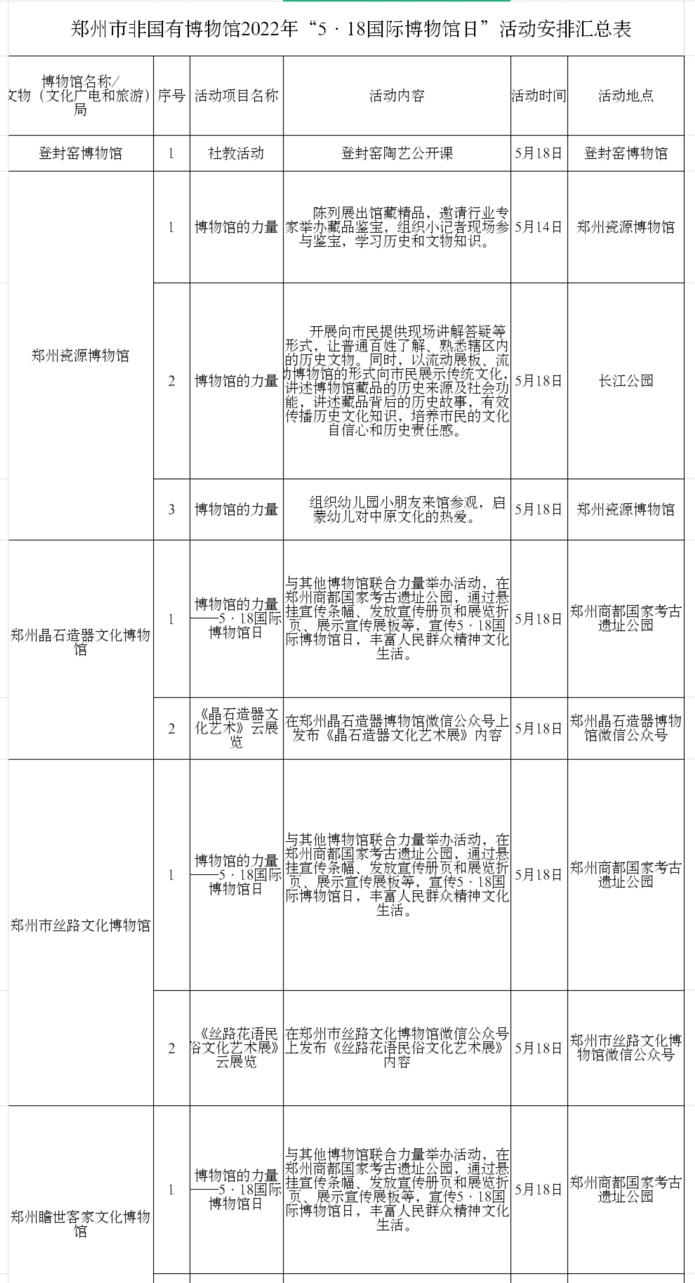 大河网讯(记者 莫韶华)作为博物馆的民间力量,在2022年“5·18国际博物馆日”当天,郑州市非国有博物馆也有很多文博活动,一起来看看吧。